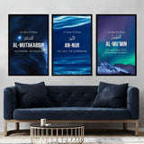 Introduce a profound sense of spirituality and elegance into your space with the beauty of "The Powerful Names of Allah (S.W.T)" 3-frame wall art collection, featuring Al-Mutakabbir (The Supreme), Al-Nur (The Light), and Al-Mu’min (The Granter of Security). Each frame elegantly showcases these revered attributes through intricate calligraphy and stunning design, inviting reflection and spiritual connection. Perfect for homes, offices, or prayer areas, this collection serves as a beautiful reminder of faith and divine presence. Elevate your environment and embrace the powerful essence of Allah’s names today!
